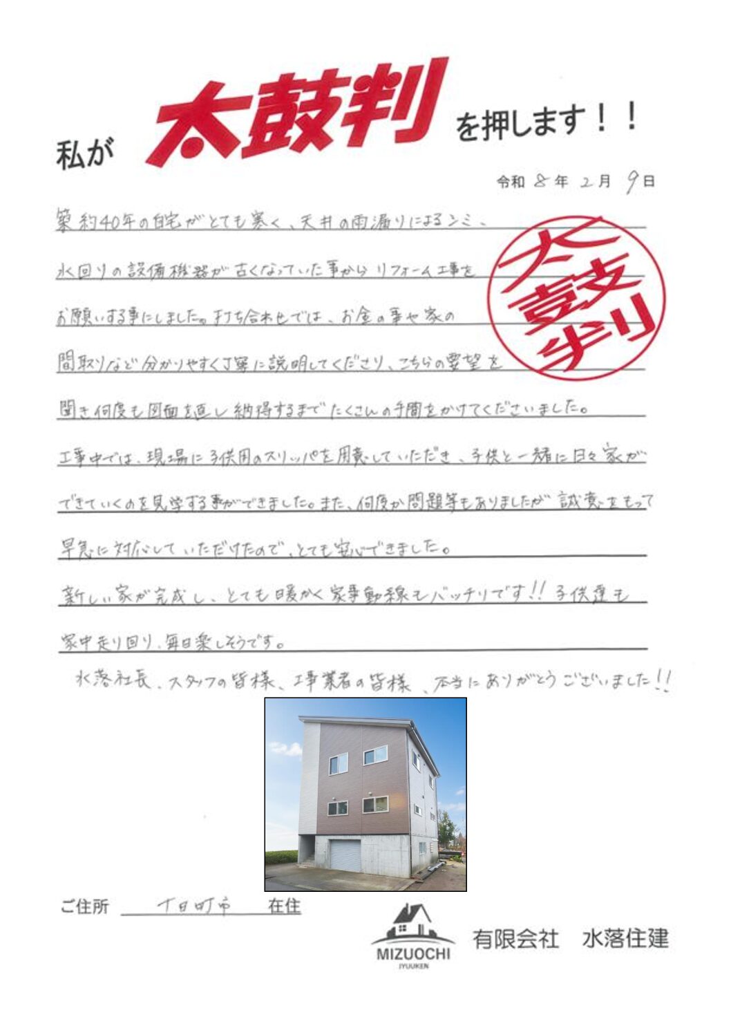 水落社長、スタッフの皆様、工事業者の皆様、本当にありがとうございました!!